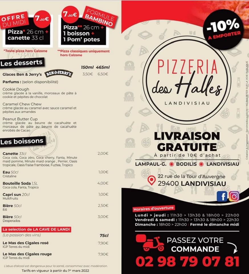 Welcome to Pizzeria des Halles, a charming pizza restaurant located at 22 Rue la Tour d'Auvergne in Landivisiau, France. Here, you'll find an exquisite menu brimming with generous pizzas crafted from top-quality ingredients. Customers rave about the delightful flavors and impeccable service, making it a favorite choice for both dine-in and home delivery.